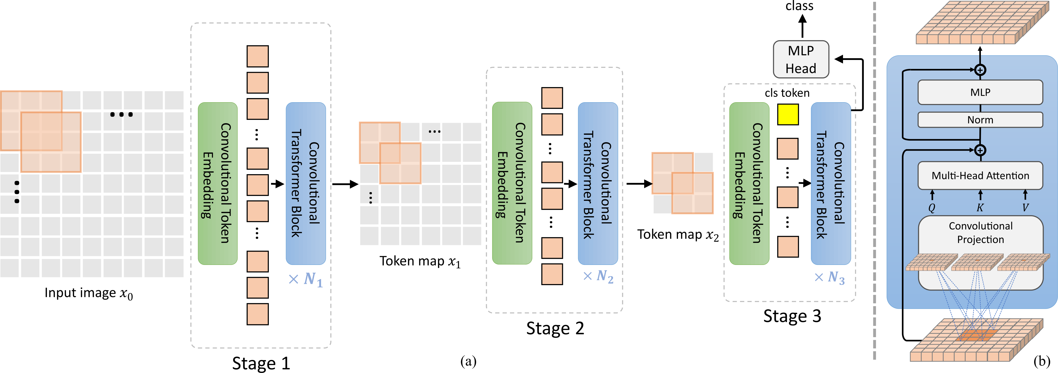 CvT 层级卷积投影结构(CvT, Fig.2)