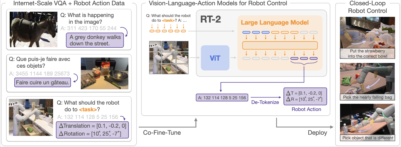 | RT-2 | 复用预训练 VLM + 联合微调 | 未见语义任务迁移显著增强 |