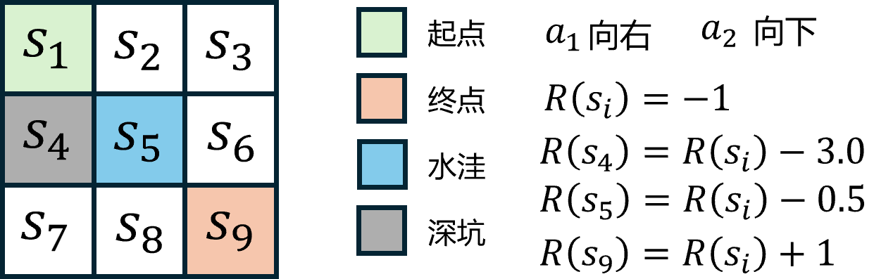 if s2 == "s9": reward += 1.0 # 终点 +1 → 净0