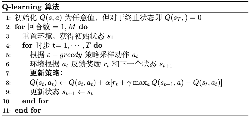 是一种基于时序差分的异策略()控制算法。与 不同, 在更新过程中使用的是下一个状态 的最优动作的估计值,而不是实际采取的动作 ,这使得 能够学习到最优策略,而不依赖于当前的行为策略。具体的更新公式如式 所示。