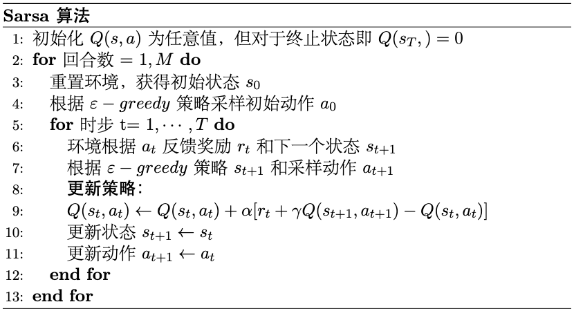 参考蒙特卡洛控制算法的流程,结合时序差分估计动作价值的方式, 算法的具体流程如图 2 所示,完整的代码实现可参考实战部分的内容