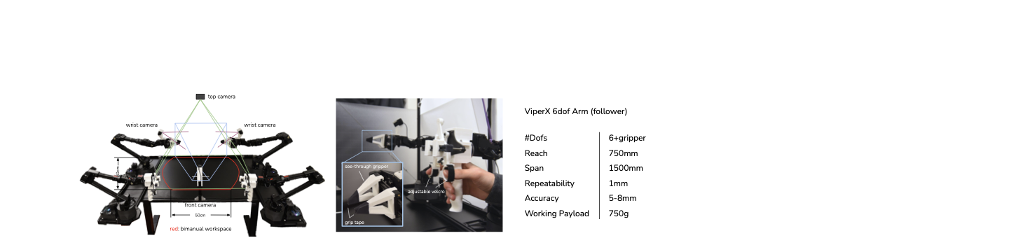 读图重点:下图用于理解 ALOHA 的 4 机位布局与双臂工作空间,对“为何需要高频闭环”很关键。