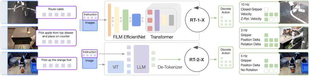 模型设置沿用了前两章已经见过的 RT-1 和 RT-2 路线: