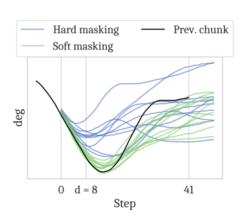 RTC 的核心做法是把“下一 chunk 生成”重写为 inpainting 问题:冻结必然会被执行的前缀,并在剩余区间做条件生成。