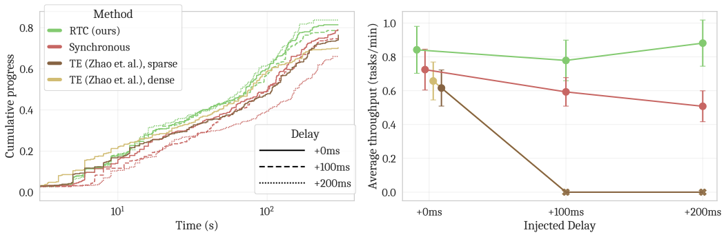 读图重点:在显著延迟注入下,RTC 仍能维持高动态闭环任务的可执行性。